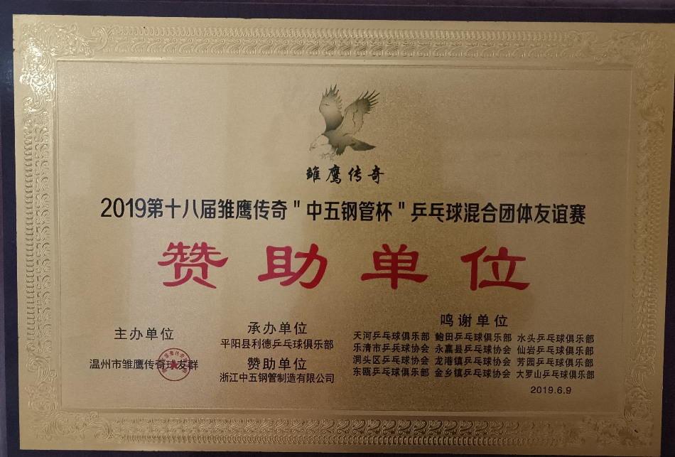 “中五鋼管杯”乒乓球混合團體友誼賽贊助