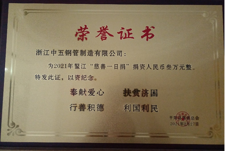 2021年,公司積極響應平陽縣慈善總會鰲江“慈善一日捐”的活動,捐贈了3萬元慈善善款。