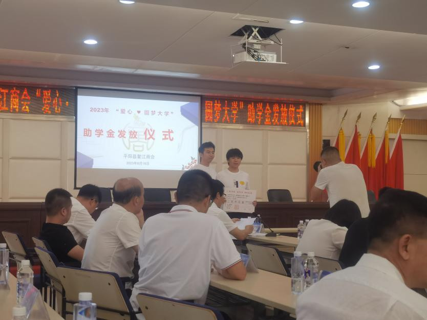 2023年公司參加了平陽縣鰲江商會組織的“愛心圓夢大學”助學金發(fā) 放活動, 為兩名困難學子發(fā)放助學金,為確保其順利完成學業(yè)送上助力。